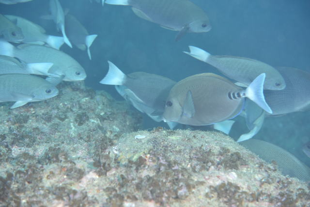 ![]() マクロではありますが、メジナの群れに何食わぬ顔で混じっているニザダイが気になっちゃいました(´∀`) きっと、自分も仲間だと思ってるんだろうなぁ♪ |