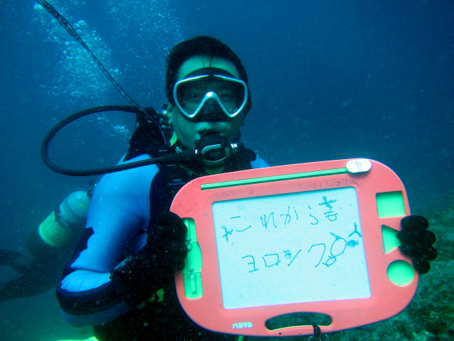 ![]() お魚いっぱいの根の上でお祝いでーす\(^O^)/ これからも楽しく潜って&撮って&笑いも取ってくださいね(^_-)-☆ |