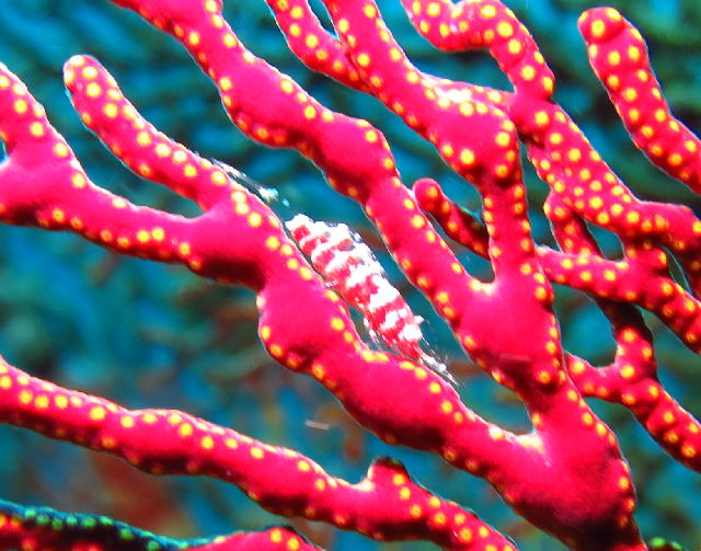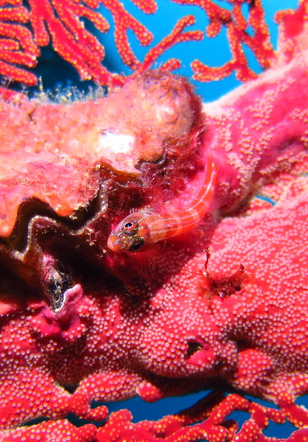 ![]() 真っ赤なイソバナは生物の隠れ場所に最適♪ ダレが隠れているか分かりますか〜? |