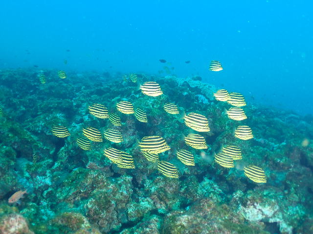 ![]() ストロボをお試しのUちゃん カゴカキダイの群れ全体にばっちり光があたっていい感じ〜♪ パラオでもこんな感じで撮ってほしいなぁ(^_-)-☆ |