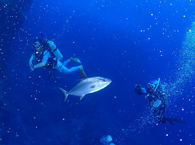 串本ツアーへ行ってまいりました! 台風の影響が心配されましたが、6ボート中全く影響もなく、すこーしユラユラした程度でした。 それも気持ちよくて、写真を撮るのも、浮遊するのも、なんでも楽しめる2日間でした♪ もちろん夜はBBQですが、その前に古座川にアカエイを見に行ったりして、この時期しか見られないものも見てきました! そして新たにAOWダイバーも誕生です!!! ご参加いただきました皆様ありがとうございましたm(_ _)m 青い! とにかく青い! 夏の串本最高です(*^_^*) アザハタもキンメモドキも気持ちよさそうに泳ぎ回ってます♪ ハゼ好きさんの時期がやってきました\(^O^)/ ホタテツノハゼを筆頭にハゼも元気いっぱいです! まだまだ水温が高いシーズンですから、これからもめっちゃ元気に出てきてくれますね♪ そして、人気者が登場! ヒトスジギンポさん(*^_^*) ちょこちょこと動き回る姿が可愛すぎですよ♪ たくさんのちびっ子や可愛いアイドルに会えるのも今の時期だからこそ! 毎回どんなアイドルに出会えるか楽しみでしかたありません( *´艸`) 真っ青な海でAOWダイバーさんも誕生です! スキルも上手なので順調に修了されました(^^♪ ご覧ください!この余裕のピースv(^o^)v ラストは少しウネリがあって揺られる感じだったんですけど、中性浮力ばっちりです! これからは、ファンダイビングで楽しみましょうね。 古座川河口にアカエイが集まる時期ということで、アフターダイブにアカエイ観察です。 夕方になるとこの場所に一斉に集まってきます! 自然の帰巣本能ってやつなんでしょうか? 川っていっぱいあるのに、なぜかここに。。。 子孫を残すための自然のシステムに感動するのみ。 もちろん夜はBBQ~♪ かんぱーーーーい! 暑い日にはビールが最高! 美味しいBBQもお腹いっぱいに堪能して、大満足な2日間でした♪ 皆様、有難うございました。 夏の海はまだまだ続きます! 夏の海を楽しみにどんどん潜りに行きましょう\(^O^)/ |