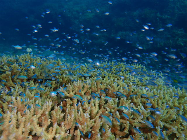 | 出会った生物 シャクシの浜:アオヤガラbaby、アオリイカbaby、スズメダイ群れ・ソラスズメダイ群れ・クロホシイシモチ&ネンブツダイ(口内保育)、マダイbaby、ダテハゼ&ハナハゼ&テッポウエビ、ジョーフィッシュ、マツカサウオ、タカベの子供の群れ、イサキ、イシダイ、コロダイ、コケギンポ、アカヒメジの子供、ミヤコウミウシなど |