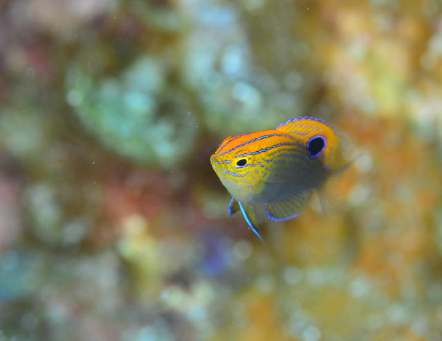 ![]() あちこちに登場中のクロメガネスズメダイのお子様〜! その色合いと表情についつい見とれてしまいます\(^O^)/ |