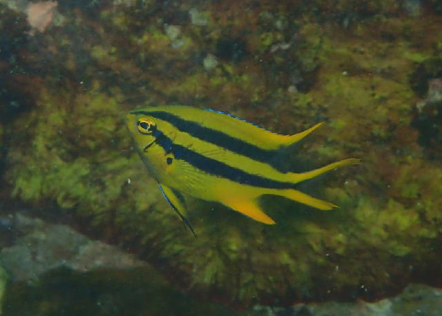 ![]() ボートもアツいが、ビーチもアツい! ヒレナガスズメダイのお子様が登場しております(^^♪ |