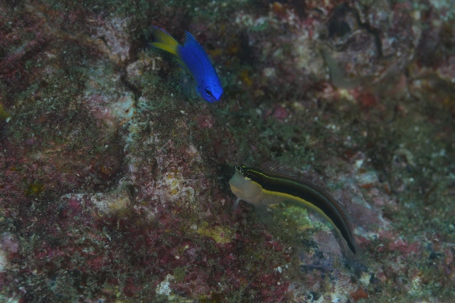 ![]() こちらは珍しいクロオビスズメダイの赤ちゃん(^-^) よく似たちびっ子に囲まれていますが、キラリと輝いていましたよっ! |