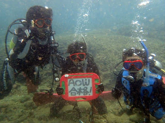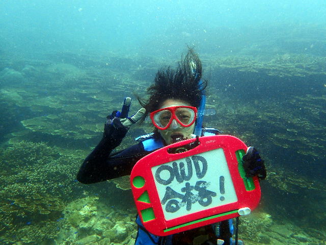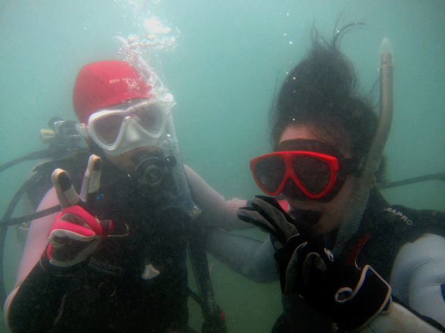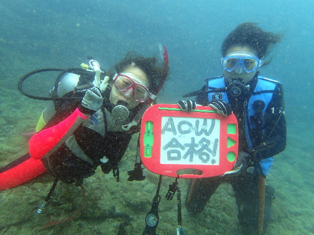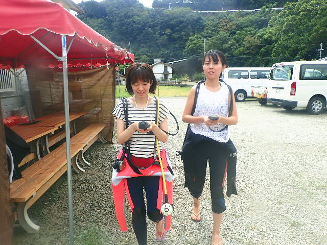 | 日帰りツアーに行って来ました! 出発の時はどんよりしてたので、なんとか晴れてほしいなあと皆で祈りながらの出発。。。 串本に着いたら、お天気良くて最高でした!!! 祈りが届いてよかった~ ちょっと風が心配されましたが、うねりも気持ちいいぐらいのユーラユラ(´∀`) AOW講習にファンダイビングに体験ダイビング♪ それぞれに串本の海を楽しまれました(≧▼≦) ご参加いただきました皆様、ありがとうございました! また、平日ツアーでたくさん潜りましょうね! まずはAさんと仲良しのUさんとファンダイビングと体験ダイビング♪ 初めての海の中、Uさんはサンゴをいっぱい見て、水中を楽しまれたようです。 そして、Aさんは潜るたびに慣れてきて、余裕が出てきました! 二人でしっかり2ダイブ(≧▼≦) そして、なんと、ビーチから器材をすべて装着して帰って来られました! 素晴らしい!!! 年齢を感じさせないその強さに感激です(^-^) 次は二人でファンダイビングで遊びましょうね♪ 続いてはAOWチーム! 残されたナビゲーションです♪ 陸上でしっかりコンパスの練習をして~ ん?Iさんカメラ目線ですけど。。。 コンパス見てね~ ばっちり練習したから水中では完璧でしたね♪ Mさん&Iさん、おめでとうございまーーーーす!!! これでますます楽しみの幅が広がっていきますね。 2週連続の日帰りツアー、楽しかった~♪ 平日にお休みが取れたら、皆さんもたまにはいかがですか!? ご参加の皆様もまたよろしくお願いいたします!!! |