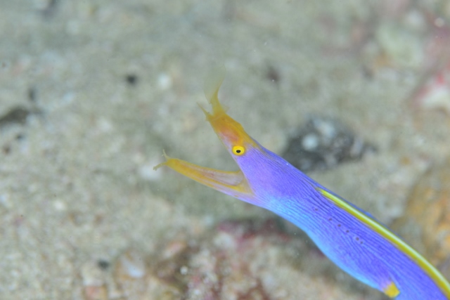 | 出会った生物 民家下北北×2:ゴールデンイールモレイ・アケボノハゼ・クロオビスズメダイyg・ナガシメベニハゼ・パンダダルマハゼ・キンチャクダイyg・ハダカハオコゼ・オオモンカエルアンコウ(黒)・ニラミギンポ・キビナゴの大群・カンパイ&ブリの群れ・アカスジウミタケハゼ・シテンヤッコ大人&子供・イナセギンポ・イシヨウジなど 後浜3番:ピグミーシーホース・クダゴンベ・イバラタツ・コクテンカタギ・ノコギリハギyg・アシビロサンゴヤドリガニ・ガンガゼカクレエビ・コマチテッポウエビ&コマチコシオリエビ・タテジマキンチャクダイyg・セボシウミタケハゼ・カンザシヤドカリ・フタスジリュウキュウスズメダイygなど 後浜6番:ハナヒゲウツボ大人・オトメハゼ・クロイトハゼyg・マツバギンポ・マンジュウヒトデ&ヒトデヤドリエビ・タテジマヘビギンポ・ヤッコエイ・カマスの大群・オヤビッチャ&キンギョハナダイ&チョウチョウウオの群れ・ニザダイ玉 勤崎:超チビ クマドリカエルアンコウ・ハナヒゲウツボ大人・ヒトスジギンポ・タテジマヘビギンポ・マツバギンポ・スケロクウミタケハゼ・アミメハギyg・シテンヤッコ・ミナミハコフグyg・キンギョハナダイ群れなど |