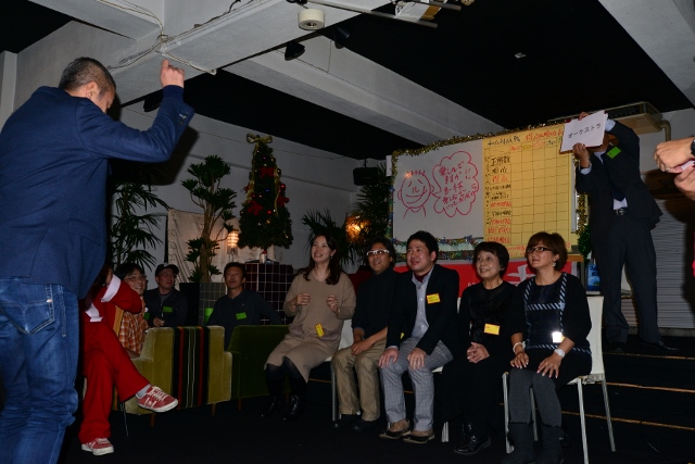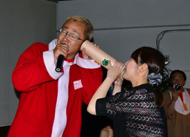お魚当てクイズの後は 「春名のかっちゃん 鼻歌 イントロどんっ!」 分かるかなあ??? ![]() 真剣に聴く皆さん! 歌に聞き入ってしまって答えるのを忘れる人もいたとか、いなかったとか。 いろんな回答が飛び出て笑いが続くこのクイズ! もちろん来年も開催予定ですv(^o^)v |