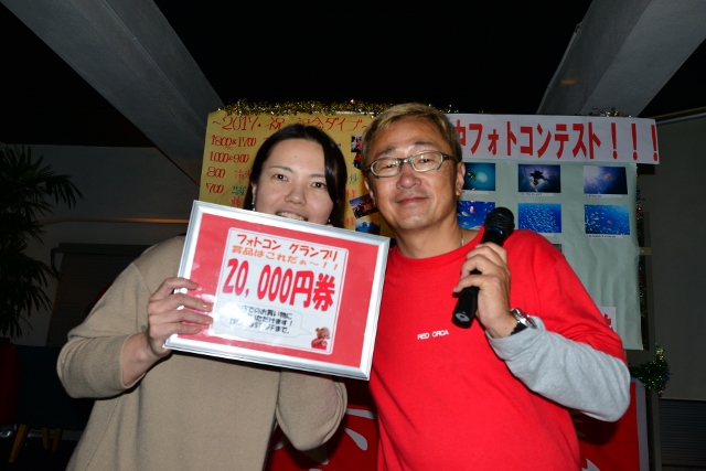 さあ、第2回戦は串本フリー券!!! 女性だけが勝ち残っていきます(^_-)-☆ 熱い女性の戦いを制し、ゲットしたのは。。。 赤鯱ヘビーユーザーの一人、Tちゃん! おめでとうございます! 来年も串本でいっぱい潜ってくださいね♪ ![]() |