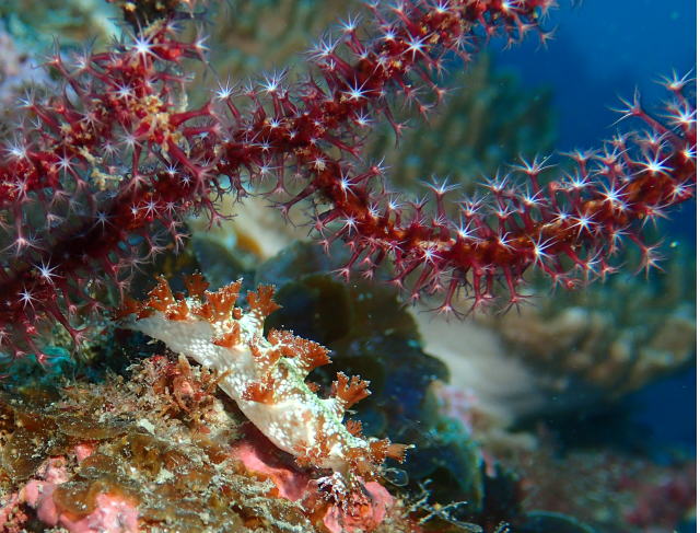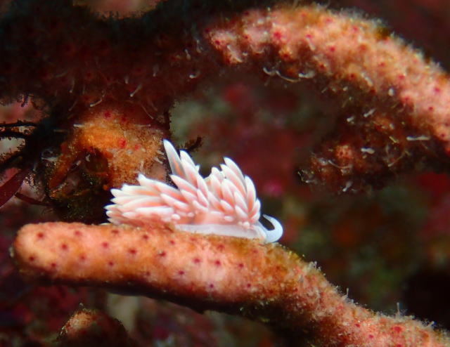 ひときわキレイな姿で現れるのはサクラミノウミウシ。 かわいいピンク♪ 日本人は桜が好きですからね、ついつい見入っちゃいます! |