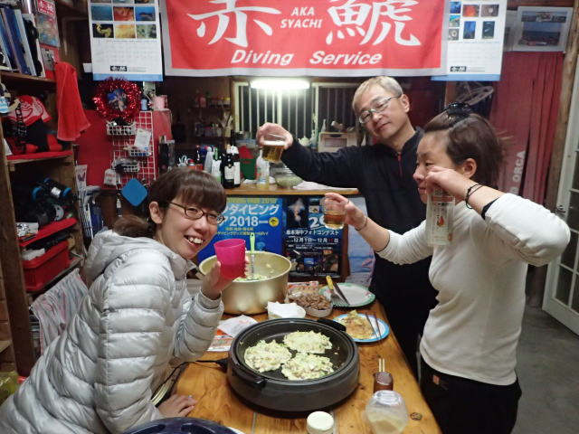 | 2018年最初の3連休は恒例の新年会ツアー\(^O^)/ すごいいいコンディションでしっかり潜って来ました。 月曜は雨が降り予報ではかなり波がでるかと思いましたが、その前にきっちり3ボート♪ 水中は穏やか&キレイな素敵な海で最高の三連休(^-^) 幸先のいいスタート~(≧▼≦) そんな中でK様の200本とS-さんの800本のお祝いも!!! 2018年も楽しいダイビングをしましょうね♪ ご参加くださいました皆様、ありがとうございました! 透明度最高の青い海♪ まさにワイド日和でした~ そんな中、初日はサルパ祭り(^-^) キレイでしょ~♪ 神秘的な姿をこうしてみるのも楽しいですね。 ただ、次の日には全く姿が見れず・・・ 一体、どこへ??? また、出会うことを期待しましょう(^_-)-☆ マクロも満載です! このセットはたまらないです~ なんかニシキウミウシとウミウシカクレエビの表情がいい(≧▼≦) そして魅惑の3ショット!!! 全部にピントを合わせるのは中々難しいですけど、だからこそ狙ってシャッターを切るんですよね~。 こういう感じも楽しいです♪ のんびりした水中で大きな欠伸のアザハタちゃん。 今年もよろしくお願いね♪ お祝いのお二人♪ 足したら1000本!!! なんか、こういうのもめでたい感じがします( *´艸`) 良いことありそう☆ お二人だけではなく、皆様のダイビングも今年1年素敵なものになりますように! それでは、2018年もレッドオルカをどうぞ宜しくお願いいたします! |