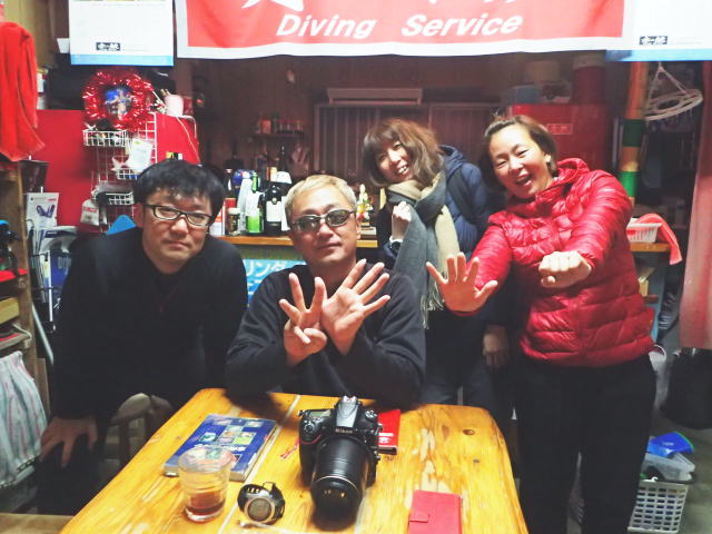 | 大寒波がやってきた週末でした。 連休明けからクローズしていた串本・・・ 潜れるのかなあと心配でしたが、ちょっと冷え込んだだけで、海は少しずつ回復! お天気は良かったのでお日様パワーで暖かい日差しを浴びれました。 土曜日は少し吹いていた風も、日曜日にはすっかり止んで日中は過ごしやすかったです。 水中もインナーをしっかり着込んで、カイロを貼れば寒くなく潜れますよ~ エンリッチを使えばさらに快適♪ 寒波に負けず、バッチリ6ダイブ!!! ツアーにご参加ありがとうございました(^-^) 先週末に会えたアイドルさん達も一部は旅立ってお会いできませんでしたが、 耐えて私達を待っていてくれた子もいます!!! シンデレラさんもそのうちの一人♪ しっかり避難していたようです(*^_^*) 元気でキレイな姿を確認できてよかったです。 バイカナマコに乗って串本までやってきたナマコマルガザミさん♪ なんとも言えない表情とフォルムが好きです(#^.^#) 日曜日には会えなかったですが、またバイカナマコに乗って串本にお越しくださいませ~~~ 土曜日は少し波がある中、がっつり潜ったので、ちょっとお疲れ。。。 夜ご飯をしっかり食べて明日に向けてパワー充電です!!! オオモンカエルアンコウのちびちゃんもいてくれました! カイメンと地面をしっかりつかんで揺れに耐えたんでしょうね。 力強い子です♪ 海況も良くなってきたのでエスカをふりふり~ 元気いっぱいでしたよ~v(^o^)v 当分の間、ここにいてくれますように☆ ![]() 日曜日には落ちていた透明度も回復して15mは見えてたかなあ。 アザハタさん達もキレイな海がいいようで、とても気持ちよさそうでしたよ♪ このままコンディション良く、きれいな水中のままであってほしいなあ。 これ以上、寒波さんが来ませんように!!! 冬の串本、楽しいですよ! 皆さんも是非潜りにお越しくださいね。 |