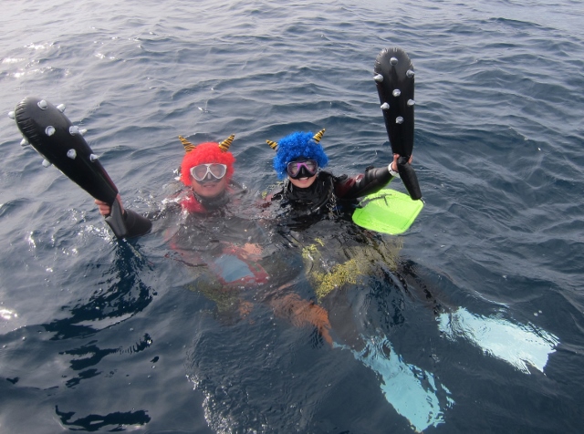 | 出会った生物 サービス前ビーチ:コケギンポ・クロヘリアメフラシ・コノハミドリガイ・アオウミウシ・シロハナガサウミウシ・キビナゴの群れ・ソラスズメダイ・キタマクラ・シマウミスズメ・ブダイ・フクロノリ&カゴメノリなど |