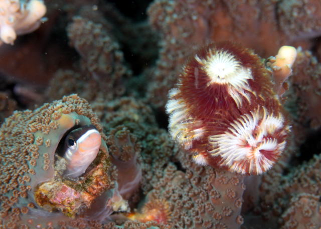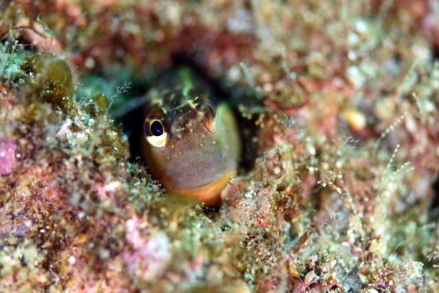 ヒトスジギンポちゃんもお顔を出してくれました! ちょっと水温下がったから引きこもりがちでした(笑) |