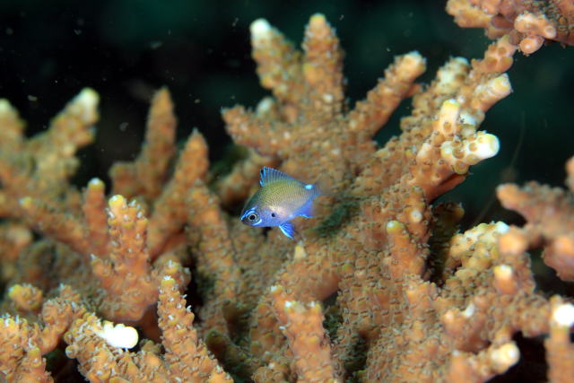 ゆらゆらヒオドシベラのちびちゃんもサンゴの上を気持ちよさそうに泳いでました!!! 良い感じですねえ♪ |