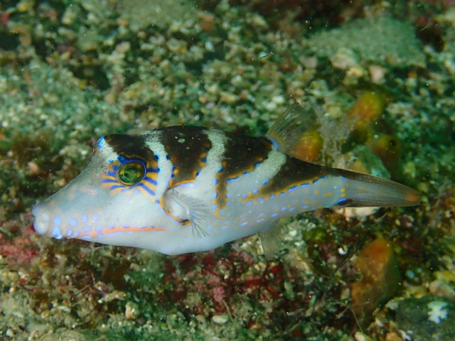 ![]() よーくいますが、よーくみるととってもキレイなハナキンチャクフグさんです♪ 歌舞伎役者みたいですね(*^_^*) |