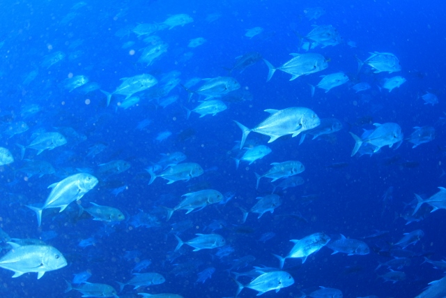 ![]() のんびり潜ったゲメリスウォールでは、ノコギリダイの群れ〜(^-^) 皆仲良く同じ方向を向いて泳いでいます! |