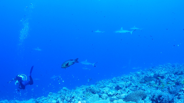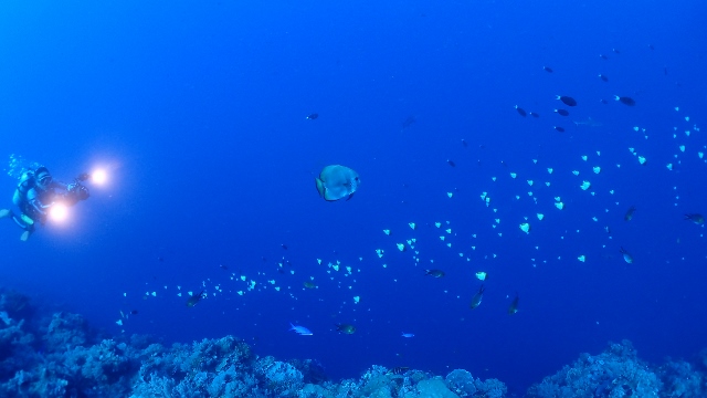 ![]() 3本目のニュードロップオフでは、ヨスジフエダイの群れに癒されました(≧▼≦) |