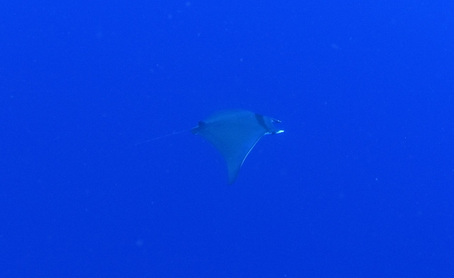 | イレズミ三昧の1本目を終えて、安全停止をしていたら 向こうからグリーンマンタちゃんがやってきてくれました〜\(^O^)/ ![]() しばし、私たちのまわりをまわってくれて、ありがとう〜♪ |