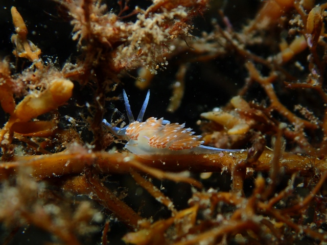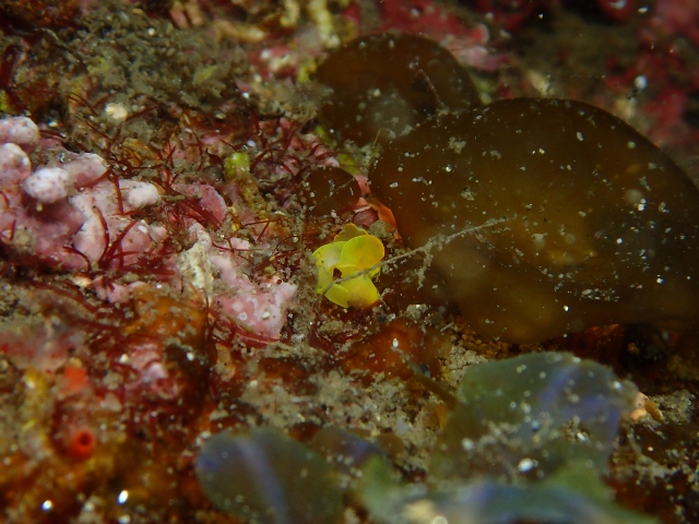 | ダンゴウオ以外にも生き物いっぱいの田後の海(^-^) 特にウミウシが多い!皆さん、それぞれに色々撮られていました! ![]() 名前を覚えるのが大変 マドレラ・フェルギノーサという風変わりなウミウシです! ![]() きれいなエムラミノウミウシが海藻の上をお散歩中でした! ![]() 二匹で仲良く並んでいたキイロウミコチョウ♪ 今にも飛び立ちそうです! ![]() 先っちょのブルーがキレイなアズキウミウシさん(*^_^*) ![]() アカボシウミウシ、こんなに可愛いのに肉食なんて… ![]() ユビウミウシもあちこちにいました! ![]() なんて可愛い正面顔でしょうか〜(笑) ![]() こちらは可愛いコモンウミウシさんです! ![]() 最後は可愛いゴマフビロードウミウシのちびっ子♪ 本当に可愛い子がいっぱいでした! |