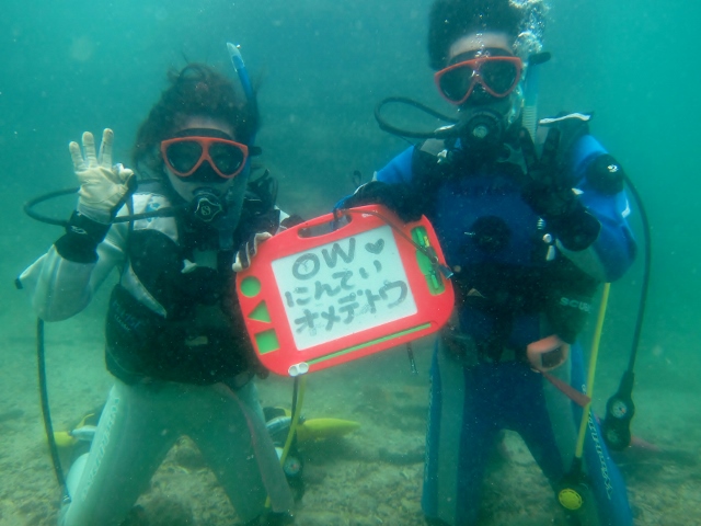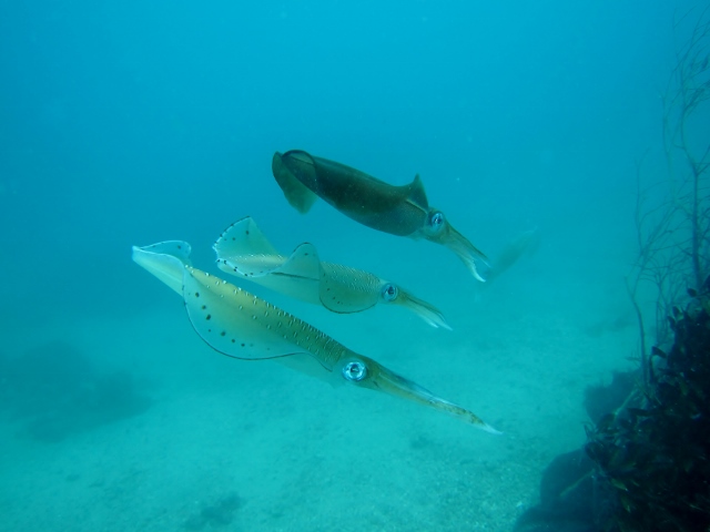 | 今週末は、前日夜の雨の影響で少し波の残る土曜の朝からスタートしました。 が、一度潜れば、今までと別世界の青い海が広がっていましたよ~! 黒潮さんがようやく帰って来てくれたのでしょうか~(≧▼≦) ボートチームは、透明度もアップした海でのんびり3ボート! 水温も20度を超えて、快適に潜れます! グラスワールドのアオリイカの産卵床では、大当たりの産卵ショー開催されていました! ビーチで講習のお二人は、初日は波もあったので、場所を移動して、穏やかな橋杭岩ビーチでスキルを練習(^-^) その後は穏やかになったサービス前ビーチでスキル練習&水中ツアーを楽しみました! 日曜はさらに穏やかできれいになった海で、残りのスキル練習からの水中ツアー(*^_^*) 中性浮力を練習しながら、楽しみました! そして、見事OWダイバー認定~♪おめでとうございます! ![]() そして、ラストはファンダイブの方とボートダイビングへ! 水面は波がありましたが、潜ってしまえば穏やかでのんびり楽しめましたね(^-^) さらに、前日ファンダイブチームの皆様がアオリイカの産卵ショーの話を聞いてたので、 早速産卵床へ行ってみました! すると… 大産卵ショーが開催されておりました\(^O^)/ ![]() 20以上の巨大なアオリイカがペアだったり、三角関係で奪い合っていたり ロンリーだったり、とどこを見ていたらいいのか分からない位のショータイムでした! ![]() 大満足でログ付けをしていると、空にかかる大きな虹が~🌈 ![]() ステキな週末になりました! ![]() ご参加いただきました皆様、有難うございました! |