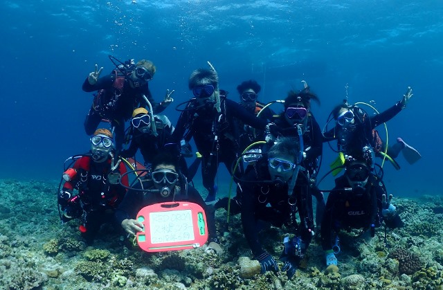 トータル6ダイブ!!全力で遊びきりましたね!! RED ORCAさんは水中でもまとまりがあって素晴らしい!と 戸田さんにお褒めいただきました〜 そんな感じが見て取れる集合写真でしょうか?!(^_-)-☆ |