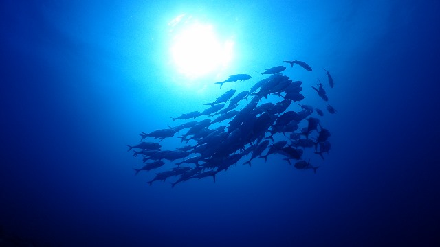 | 毎年恒例の6月は久米島へ行って来ました~!! 出発前から天気図には不穏な空気…ではありましたが、 出たとこ勝負にうんと強いレッドオルカチーム、勝負をかけて?(おおげさですね) 久米島へ行って来ました~(^-^) すると、お天気なんて青空が広がり、 島の南側こそうねりが入っていましたが、 北側のポイントは穏やかです(*^_^*) 早速、皆大好きなギンガメアジに会えるあのポイントへ~!! すると…会えちゃいましたよ~\(^O^)/ ![]() 早速の登場に思わずダッシュのゲスト様です(≧▼≦) 太陽もでて、いい感じの群れに出会うことができました! ![]()