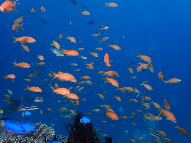 | 海況:うねり&波あり 水温22℃ 透明度 ボート10~15m ビーチ 3~5m |