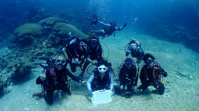 ![]() 到着日から2ダイブが最近のメジャーになってきました♪ せっかくの夏の沖縄、ちょっとでもいっぱい潜りたいですもんね〜! |