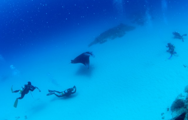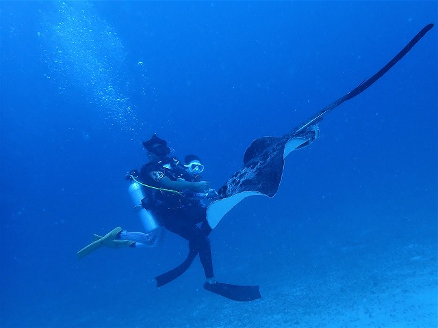 | 砂地で待つこと・・・数十分 あの子はやって来てくれました〜っ!! ![]() しかもダブルでっ!! 砂地でみるマンタは最高にキレイ!かっこいい!素敵! どんな言葉でも言い表せない素晴らしさなのです\(^O^)/ ![]() 近い!でかい!でも速い〜っ! あっという間の出来事でしたが、出会えてよかったですね(^-^) ![]() マンタとダイバーの距離感、こんなに間近を通過してくれたら最高です♪ ![]() これは、マンタを背負ったマンタの神様のおかげですよね〜(^_-)-☆ ![]() |