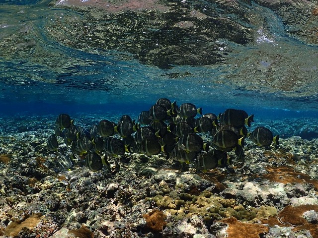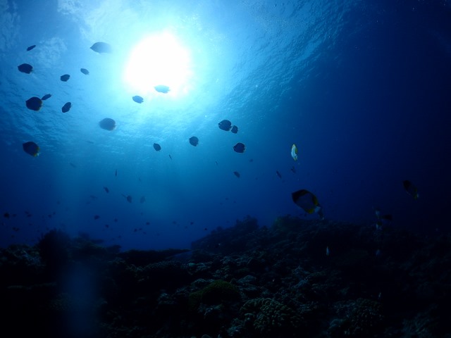 ![]() 翌日は、バラス島の近くでカスミチョウチョウウオの群れにまみれました〜っ(^-^) 沖縄来たっ!ていう感じのする光景です! |