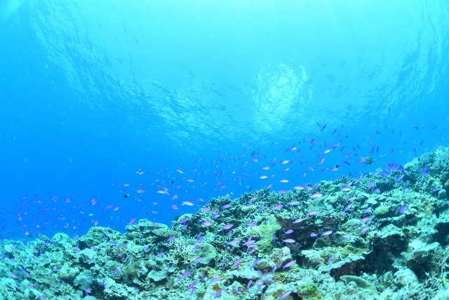 ![]() ハナゴイの群れも凄かった〜っ!! 透明度も抜群で、空が丸見えです☆ |