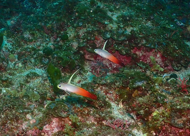 | 見られた生物 サービス前ビーチ:オキザヨリ・イシダイの子供達・ミナミハコフグyg・コケギンポ・ソラスズメダイ巣作り&卵・クロホシイシモチ口内保育中・カンパチの子供・イワシの群れ・ブリの子供・キビナゴ群れ・チョウチョウウオ・オトヒメエビ・クマノミ・シロハナガサウミウシなど 住崎:イロカエルアンコウ・ミナミハコフグyg・テングダイ・アマミスズメダイ群れ・ナミマツカサ・ウツボ・クマノミ&卵・キンギョハナダイ・コロダイ・ホンソメワケベラ・コケギンポ・ムラサキウミコチョウなど |