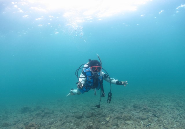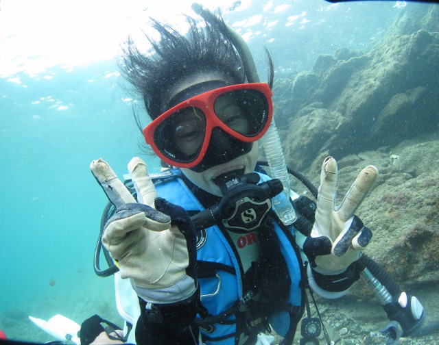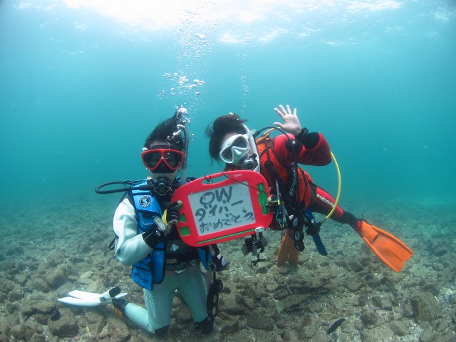 | 西日本を中心に豪雨被害が起きた週末です… 串本は幸いそれほど雨も降らず、海はうねりを残しつつも、だんだん穏やかになっていきました。 電車が不通となり、参加できなくなった方が多い中、ご近所にお住いのKさんだけはばっちり参加できました。 そして、のんびり二日間で講習を修了し、最後はボートダイビングにまで挑戦されましたよ! 土曜は、浅いところでスキル練習をしていると可愛い子が私たちにまとわりついてきました(*^_^*) イシダイの赤ちゃんかと思われますが、目の前を行ったり来たりで、 とっても可愛らしい姿でした(^_-)-☆ ![]() さらに、コケギンポさんも空を見上げているところに遭遇♪ ![]() 講習をしつつも、色々な生物や、シーンを目撃しましたね! 初日にして、この余裕のピースサインとスマイルです(´∀`) ![]() 日曜は海も随分穏やかになり、ラストダイブへ~♪ ![]() 水中では、中性浮力もどんどん上手になって、この通り~\(^O^)/ ![]() サンゴのエリアには、毎年恒例のオキザヨリが産卵場所をチェックしに来ていました! そろそろでしょうか~?とっても大きなオキザヨリでしたよ! ![]() ということで、無事にOWダイバー認定です(*^_^*) おめでとうございまーす!次の目標も決まったので、楽しくスキルアップしていきましょうね(^_-)-☆ ![]() 初のボートダイビングでは・・・ 一体、どこが魚だったのかわからなかったかもですが、 ベテラン カメラ派ダイバーの方の写真を見ると、こーんなシーンにも出会えるんですよ~♪ ![]() 少し濁り気味の海でしたが、最後は浮遊感を楽しみながら泳ぐ練習もばっちりでしたね! 次回も宜しくお願いします! ![]() |
