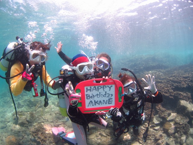 | 久々に平日日帰りで串本へ行って来ました~! お天気もよくて、海も穏やかです(*^_^*)そして、空いている♪ 平日はいいところいっぱいですね! さて、1本目は、全員でのんびりビーチダイビングへ! 差し込む太陽の光と、きれいな海が待っていてくれました~\(^O^)/ サンゴ地帯では、キラキラの光とサンゴとソラスズメダイやクロホシイシモチの乱舞! 癒されますね~♪ ![]() そんな癒しのビーチから新しい歳がスタートしたSTAFFのお祝いもしました~♪ ![]() もちろん人気者のコケギンポ センター長も愛想を振りまいてくれます! ![]() 盛んに巣作りを頑張っているソラスズメダイの卵をちょっとだけ見せてもらうと… ![]() 物凄いスマイルな卵を発見!! ちょうど真ん中あたり、ニッコリ微笑んでるのわかります~? 顕微鏡モードの力ですね(^_-)-☆ 2本目は、ボートチームとビーチチームに分かれて~ ビーチでは、可愛いヤッコエイの赤ちゃんが登場~♪ このサイズのエイ、初めて見ました!!ナマコとの比較でサイズわかるかな? ![]() ボートでは、しばらく行方不明だったシモフリカメサンウミウシが復活~♪ ![]() またしばらく居てほしいなぁ♪ イサキやスズメダイの群れも凄くて、水中の賑わいが最盛期に向かってどんどん増えてますよ~! 夏の海はあっという間ですので、まだの方はお早めに~! ご参加いただきました皆様、有難うございました!来月は29日(水)に日帰りしますよ~♪ ![]() |