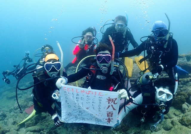 ![]() 水中でも記念撮影〜(^-^) 愛の水中胴上げや水中ハグは拒否られましたが(笑) これからもご夫婦で仲良く楽しく潜りましょう〜♪ |
