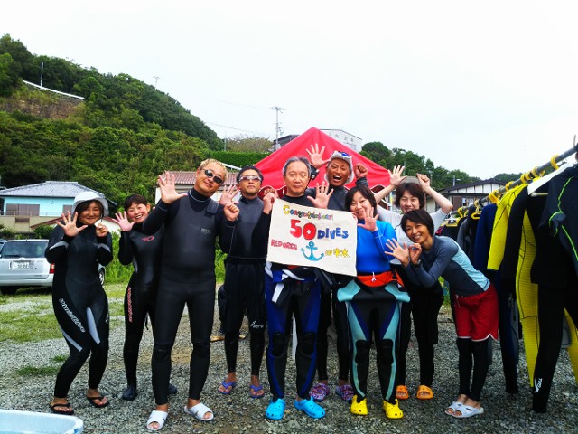 ![]() 猛烈な台風21号接近の影響が心配されましたが、 なんとか最後まで楽しく潜れました(^-^) そして、Uご夫妻が今回で50本〜!おめでとうございます\(^O^)/ ご参加いただきました皆様、有難うございました!! |