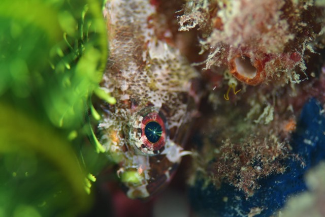 ![]() 緑のウミシダみつけると、なにかいないかな〜と思っちゃいます(^_-)-☆ カサゴのキラキラの瞳が素敵♪ |