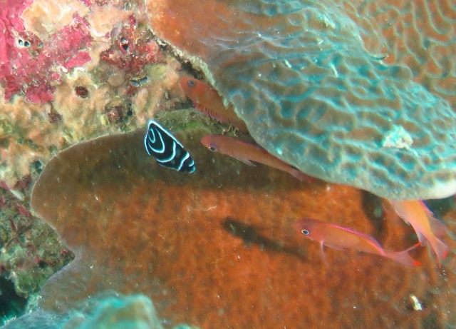 ![]() あちこちでミツボシクロスズメダイのちびっ子も急激に増えてきました! やっぱり可愛い♪ |