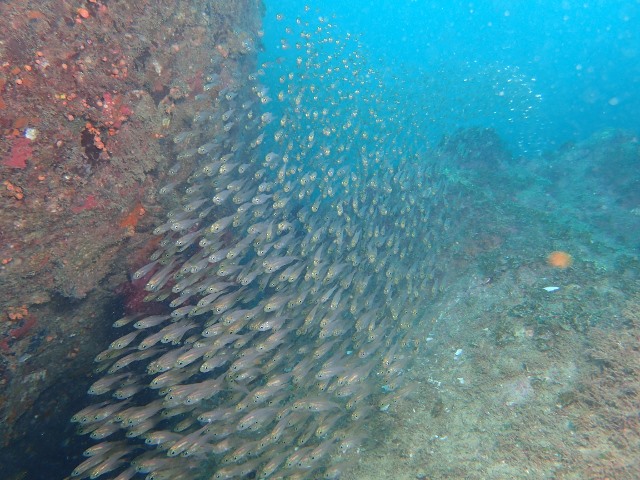 | 見られた生物 グラスワールド:キビナゴの大群&カンパチ・ミナミハコフグyg・クロホシイシモチの大群・アザハタ・ハタタテハゼ・カゴカキダイの群れ・ソラスズメダイの群れ・カンザシヤドカリ・クチナシイロウミウシ・ロボコンエビなど 住崎:ツバメウオ・ミナミハコフグyg×2・シマアジの群れ・イソコンペイトウガニ・ミナミギンポ・テングダイ・クロホシフエダイの群れ・グルクンの群れ・アザハタ&キンメモドキ&クロホシイシモチ大群・キンギョハナダイ群れなど |
