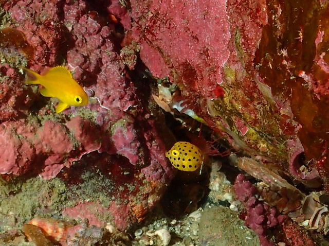![]() そして、まだまだ見かける可愛いサイズのミナミハコフグの赤ちゃん(^-^) コガネスズメダイもまだちびっ子なので、この子の小ささわかるでしょうか〜? |