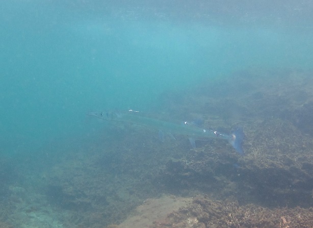 ![]() j講習中には、毎年この時期に産卵のためにビーチにやってくる巨大オキザヨリ! なぜか体が傷だらけでした。 |