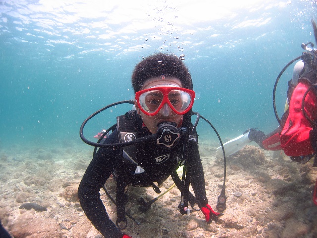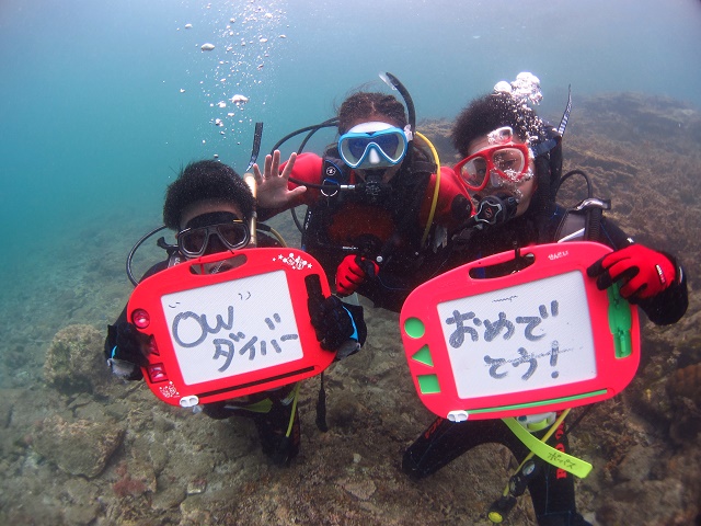 | この週末にOW講習でダイバーになられたお二人! カメラを向けると余裕のピースサインです(^-^) ![]() 体験ダイビングを2回もしているので、さらに余裕のKくん! ![]() |