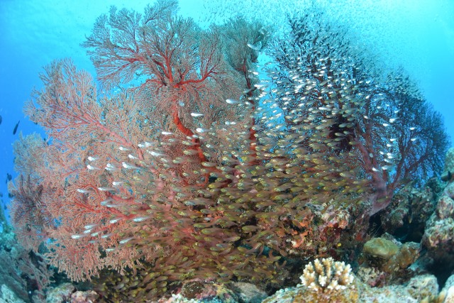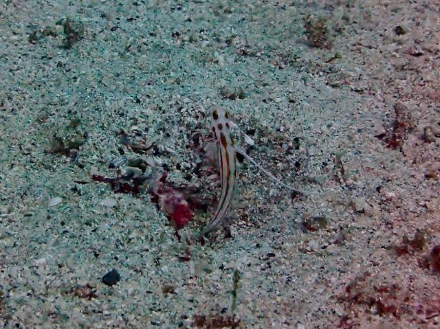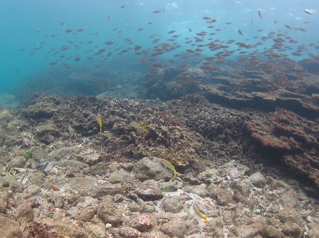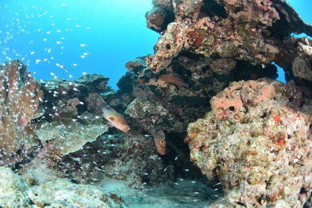 | 出会った生物 ソラスズメダイ群れ・クロホシイシモチ群れ・各種チョウチョウウオyg・イタチウオ・ミナミハコフグyg・キリンミノカサゴ・ウツボ・ギンガメアジの子供たち・オトヒメエビなど |
