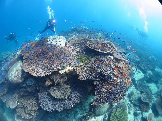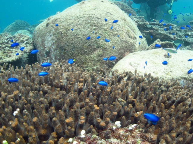 後浜の浅場のサンゴエリアは、キンギョハナダイやソラスズメダイが乱舞しまくりで 本当に癒しの光景です\(^O^)/ |