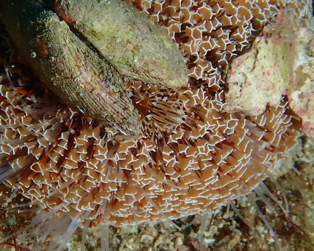 柏島では、よく見かける気がするゼブラガニ! ラッパウニの刈りあとを見つけたら要チェックです! |