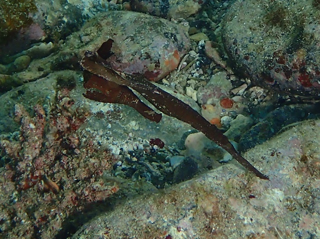 ゆ〜らゆら漂う枯葉のようなカミソリウオのペアは、 大きい方のお腹にびっしり卵が入っていましたよ〜! |