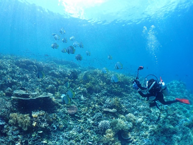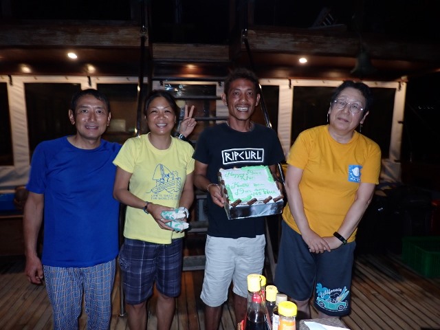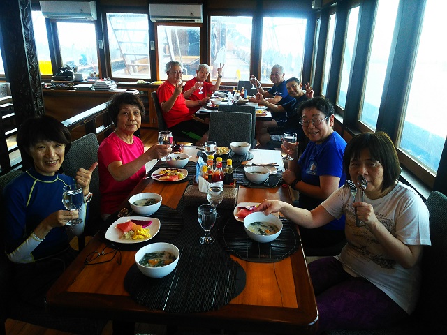 | RED ORCA初ツアー 「奇跡の海」とも呼ばれているインドネシア東部 ラジャアンパットへ行ってきました~! 往路は、関空でのドローン騒ぎでなんと3時間も出発が遅れ… デンパサール空港では、ハラハラドキドキの乗り継ぎ1.5時間しかないっ! ジャカルタ空港も、空港が巨大なので、移動しているだけであっという間に搭乗時刻となり、 関空以外では、とにかく空港のイスには5分座ったかどうか、というくらいの慌ただしい移動になりました(>_<) それでも、最終的には、翌朝、無事に予定通りに最寄りのソロン空港に到着! 早速、港へ移動して、このツアーで滞在するクルーズ船「HATIKU号」に乗船です! ![]() ソロンの港からラジャアンパットエリアまでが、約5時間の船旅ということで、 乗船後は、簡単な案内、器材の準備、お部屋に入って、朝食! 長旅を癒してくれるお粥で迎えてくれます(^-^) ![]() その後は、一旦お部屋で休憩。ランチを挟んで、再び休憩、とのんびり過ごします。 そして、15時ごろからローカルブリーフィングで、 ラジャアンパットの海についてなど、様々な情報を聞かせていただきました! ![]() 夕方になってしまいましたが、早速チェックダイブを兼ねて1ダイブです! ワイゲオ島のポイントで潜りました! 固有種のお魚や、見渡す限りのカラフルなサンゴ&ソフトコーラルの景色に、 早速、ラジャアンパットのすばらしさを垣間見た1ダイブでした! ![]() 2本目は、夕食後に希望者でナイトダイビングです! 長旅の疲れもあり、精鋭の3名のゲストといざ夜の海へ!! 小さな甲殻類の数々に、なにか分からない小さなお魚の赤ちゃんなど、 夜ならではの生物を楽しみましたよ。 ![]() 翌日は、一気にバタンタ島まで移動しました。 ここのところ、マンタポイントではマンタがでていないそうで、現地の情報で、マンタを求めての大移動です! すると…エントリーしてすぐに、なんとブラックマンタが出てくれました~\(^-^)/ 普通のマンタは色々な海で出会ってきましたが、ブラックマンタはほとんどの方が初対面(^o^) しかも、1ダイブ中に、なんども私たちの周りへやってきては、泳いでいく姿をみせてくれました! ![]() マンタとも無事に会えたので、再び島を移動して、午後から2本目です! ここはまず桟橋マジック!!もうずーっとここにいられそうなくらいに桟橋周辺のお魚が群れ群れなんです! ゲストの皆さんも、すっかり桟橋フリークになられていましたよ(^_-)-☆ ![]() そして、このポイントの目玉は、少し深場にあるイエローリボンスイートリップスなどが群れている場所♪ 到着すると、ツマグロや、ナポレオンなどの大物も一緒に普通にそこにいる感じ! なんなんだ、ここは~っ!!! そして、この子たちの身を寄せ合ってひしめき合ってる感じ、大好きです(^-^) ![]() そこから再び桟橋へ戻る途中には、超巨大なタイマイに遭遇したり、バラクーダの群れ! そして、ユメウメイロの大群が織りなす本当に夢のような光景etc ![]() もう全ダイブここでもいいわ!くらい楽しいポイントでした! 次は、少しだけ移動して、2月にSTAFFだけで来た際にジュゴンに遭遇したポイントへ! ここも、とにかく魚が多い~\(^-^)/そして、サンゴもいっぱい~♪ 透明度もいいので、のんびりまったりと楽しむことができました! ![]() この日も夕食後に希望者はナイトへ! 70代の3名はお休みで、それ以外の5名のゲストとナイトです! すると…なんとウォーキングシャークがでてしまいました~\(^-^)/ 最近はここではでていなかったそうなのですが、なんという強運♪ しかも、他のダイバーもいなかったので、のんびり観察&撮影もできちゃいましたね! なんとも可愛らしかった~♪ ![]() さて、ダイビング3日目に突入です! この日はサンゴのきれいな所へ行きます!ということで、メリッサガーデンというポイントへ! ここも2月に潜った際に、STAFF全員が感動したとにかくサンゴのすんごいところ!! ただ…満月ということで、結構流れておりまして、ハプニングもあり、 メンズチームとレディースチームは別行動となりました。 レディースチームには、なんとエントリー直後からコバンザメちゃんが近づいてきて、 そっと私たちチームの一員に!! 最終的には、全員に一度はコバンザメしてくれたんじゃないでしょうか(笑) サンゴもすごかったのですが、この子もめっちゃ可愛かったんです(^o^) ![]() そして、もちろん一面に広がるサンゴ・サンゴ・サンゴ~!!! その上に群れる魚・魚・魚~っ\(^-^)/ ほんとうにヤバイポイントでしたね♪ 流れに逆らって、頑張った甲斐がありました!! ![]() 次も、同じくサンゴのきれいなポイントへ! ここも多種多様なサンゴに、お魚の数がめちゃくちゃ多いところでした! ![]() 2ダイブ後、なんとシャワー待ちでデッキに残っていると、イルカの群れがHATIKU号についてきました! しばらく一緒に泳いでくれたのですが、先にシャワーに入られた方は見れず…少し残念でしたが、 こーんな感じでジャンプを繰り返してくれましたよ! ![]() さらに希望者で昼食