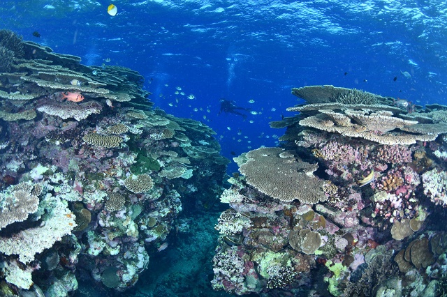 ![]() 西表島のサンゴはとにかく元気いっぱい〜♪ どこまでも続く枝サンゴの群生に癒されまくりです! |