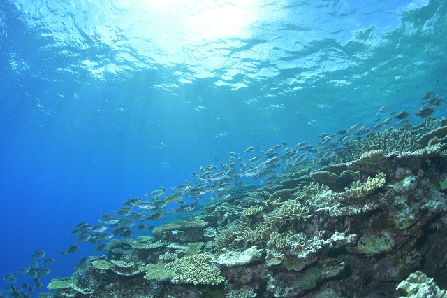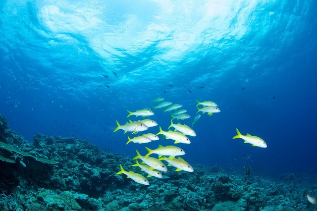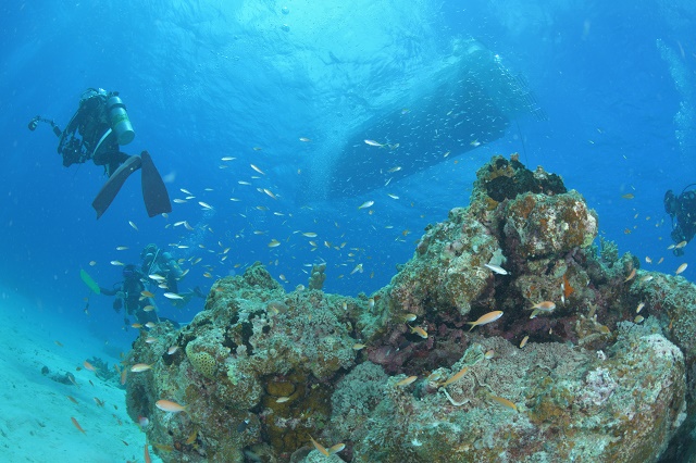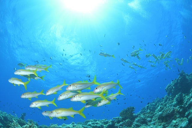 ![]() ノコギリダイやアカヒメジの群れに、回遊魚もやってきて、沖縄感満載です! |